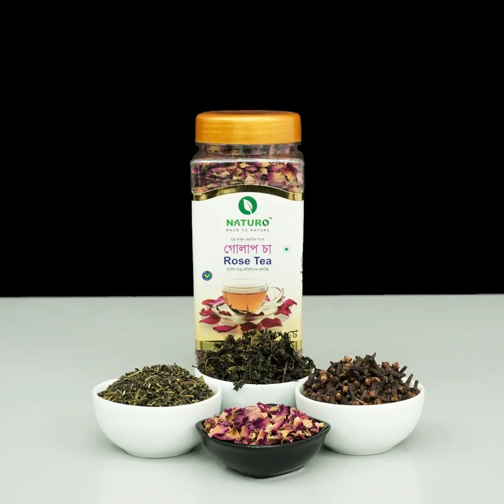 গোলাপ চা হল একটি প্রাকৃতিক এবং সুস্বাদু পানীয়, যা গোলাপের পাঁপড়ি থেকে তৈরি। এটি প্রাকৃতিকভাবে অ্যান্টিঅক্সিডেন্ট সমৃদ্ধ এবং বিভিন্ন স্বাস্থ্য উপকারিতা প্রদান করে।